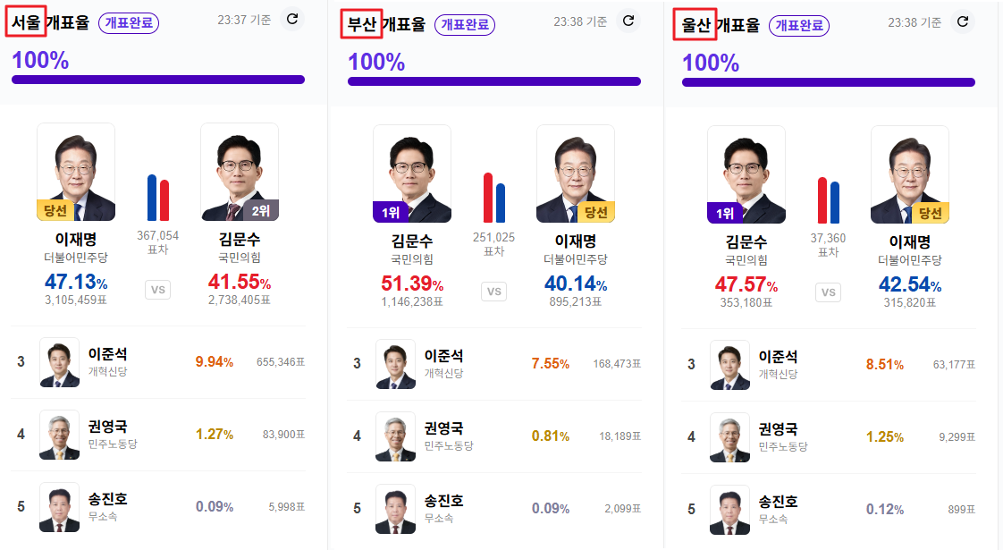 내란수괴 윤석열과 김건희가 나라를 거덜내고 국격을 땅에 쳐박았는데도 이정도밖에 차이가 안난다니. 대구/경북은 그러려니 하더라도 서울/부산 도시에 사는 사람들도 상당수 그냥 국민의힘/새누리당/한나라당을 찍는다는게 말이 안된다고 느껴진다