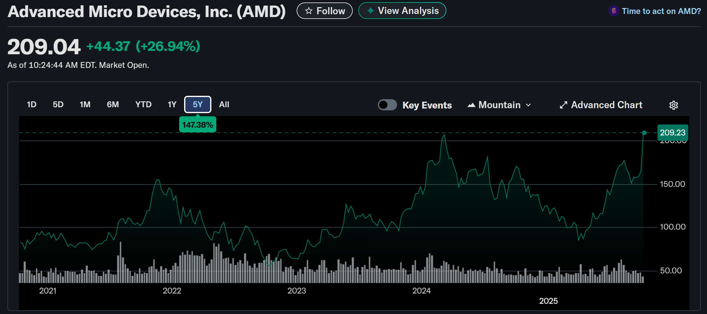 2026년 1년 Data Center revenue가 못해도 $25B으로 forecast를 앞으로 남은 두번 실적에서 가이드를 줘야 할텐데, 그래야 계속해서 upside를 유지할수 있을듯. 25B이면 YoY가 60%되는것이고 OpenAI만 있는것은 아니니 만약에 이 보다 높게 가이드를 준다면 다시 폭등도 가능할듯. AMD의 제품이 예상대로 나오는지와 실행능력에 달려있음.