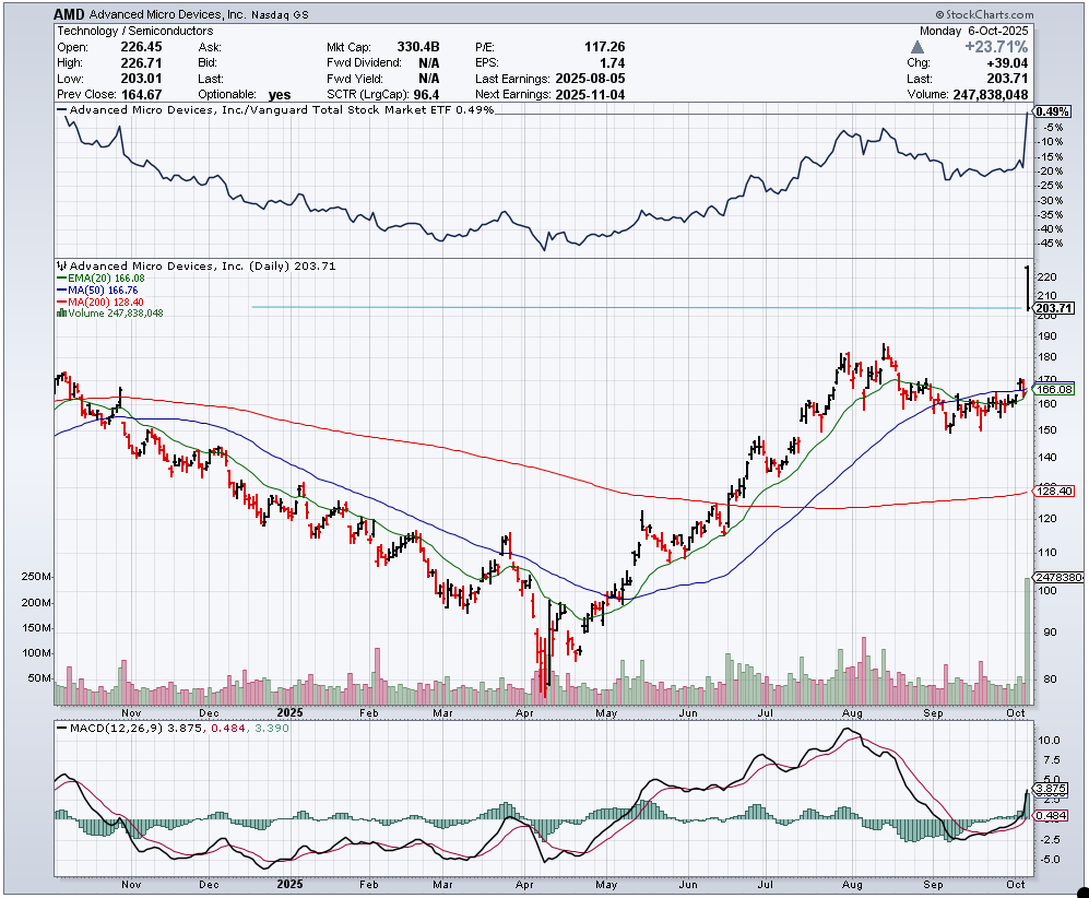 OpenAI 와 AMD사이에 다년간에 걸친 6GW급 인공지능 AI GPU 공급계약이 10/6월요일 개장전에 미국을 흔들었다.